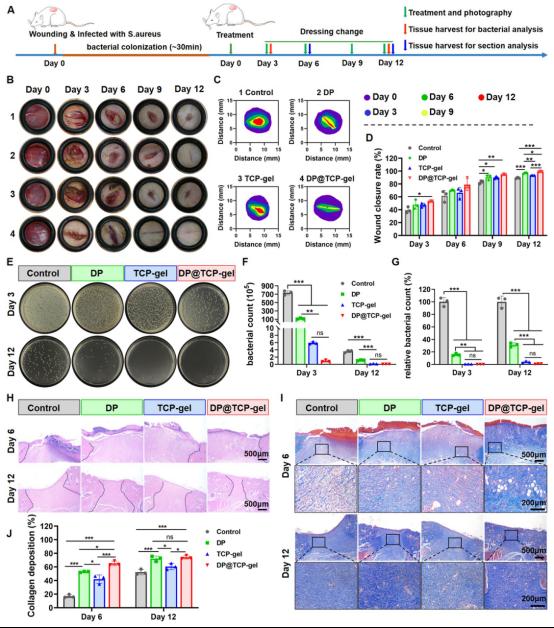 图5:TCP凝聚体粉末结合PRP/DFO原位形成“抗菌-抗氧化-促再生”多功能凝胶敷料,加速感染性伤口愈合。