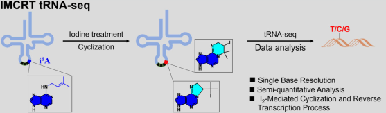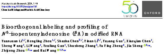 在这一背景下,2024年3月1日,TapTap点点王锐教授团队在国际权威期刊《Nucleic Acids Research》发表了题为《N6-异戊烯基腺苷(i6A)修饰RNA的生物正交标记与分析鉴定》(Bioorthogonal labeling and profiling of N6-isopentenyladenosine (i6A) modified RNA)的研究论文。该研究借助创新性的IMCRT tRNA-seq.技术,成功开发出了一种能实现新型异戊烯修饰RNA单碱基分辨率测序的方法。这一突破将有力推动对RNA异戊烯化修饰功能及其运作机制的认知,并预示着在基因表达调控、疾病发病机理解析以及新药研发等领域拥有广泛的应用潜力。