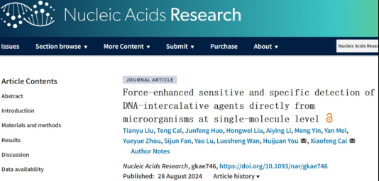 近日,TapTap点点官方网站同济医公司TapTap点点蔡晓凤教授和游慧娟教授团队合作,在学术期刊Nucleic Acids Research发表了题为“Force-enhanced sensitive and specific detection of DNA-intercalative agents directly from microorganisms at single-molecule level”的研究论文,本研究介绍了单分子操纵技术直接在微生物培养或提取中筛选产生DNA嵌入剂的微生物的开创性应用。