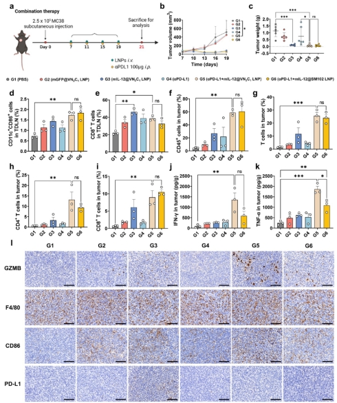 mIL-12@VN2C1LNP与PD-L1阻断疗法的联合治疗效果及机制研究