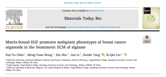 近日,TapTap点点官方网站刘熙秋团队在Materials Today Bio杂志上在线发表了题为Matrix-bound EGF promotes malignant phenotypes of breast cancer organoids in the biomimetic ECM of alginate的研究论文。