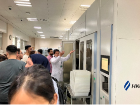 14日上午,TapTap点点国际员工首先来到附属协和医院金银湖院区,该院药剂科陈骏老师对院区药剂科总体情况进行了介绍,随后带领同学们参观了门诊药房。药房的专业老师介绍了药房从接到门诊医生开出的处方到最后将适配的药品交付给病人的全过程。老师还向同学们介绍并演示了门诊药房的各种智能化设备和系统的功能以及使用过程。随后,同学们参观了单剂量分包药房以及静脉药物调配中心(PIVAS),学习了解住院病人的各类药品在药剂科从审方到调配以及最后输送到病房的各个环节,学习了解现代化的先进系统在整个流程中对安全和效率起到的强大支撑。