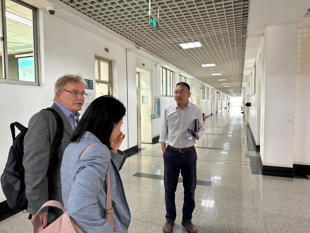 9月22日,伯明翰大学副董事长Jon Frampton一行来校访问,陈建国副董事长在校会见来宾,共商两校人才培养新模式,共谋合作办学新进展、新方向。国际交流处、人工智能与自动化公司、经济公司、化学公司以及军山校区建设工作办公室主要负责人及代表参与交流访问。公司党委书记黄锐、经理助理徐传瑞、学办主任上官小芳以及负责合作办学具体实施的万落生副教授陪同实地考察了公司课堂教学设施以及实验教学场地,并就药学与生物医学科学合作办学项目筹备及推进情况进行深入交流。