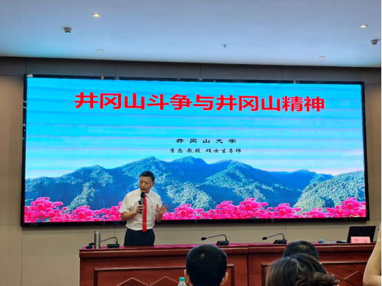 19日晚,培训班举行开班仪式,奏唱庄严的国歌后,井冈山大学李忠教授做开班致辞并授班旗,全体学员在班旗下郑重宣誓。公司党委书记黄锐对学员们提出学习要求,强调要深入学习传承井冈山精神,以守护人民健康为己任,在医药创新的浪潮中勇攀高峰,推动科研与成果转化,为医药事业发展贡献力量。随后,李忠教授为大家讲授党课《井冈山斗争与井冈山精神》。