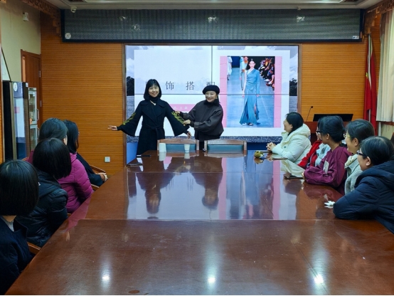 在介绍完人体风格特征分析后,王老师逐一分析了在座女老师的风格特征,并给予了合理着装搭配建议。王老师还以讲座现场着装搭配合理的老师为例,总结了着装搭配合理性的各项原则及应用技巧,让现场气氛达到了高潮。整个讲座气氛温馨、互动热烈、充实高效。