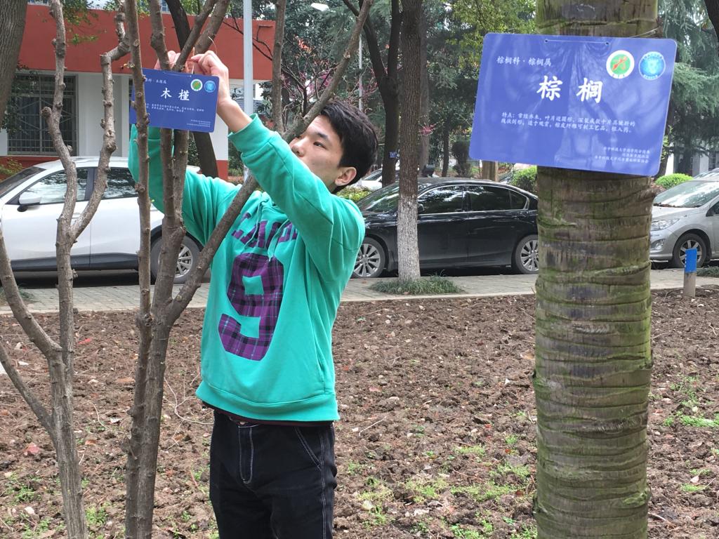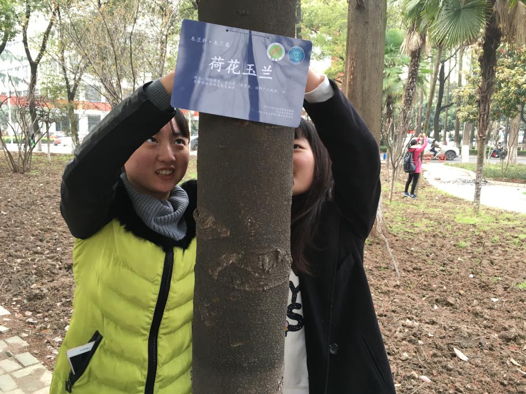 亲手给同济医公司的树木挂上新牌,也让我们懂得要珍爱我们的绿色资源,符合“低碳,环保,绿色”的理念,校园也正是因为有了这些花草树木而更加多彩。