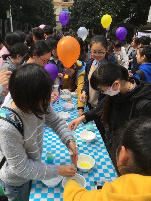 看到这些风格各异的手工展品,前来参观的同学们也跃跃欲试了。活动现场还为大家准备了DIY星空瓶的材料,同时提供明信片,并可帮其“邮寄”到学子苑任意地点。活动现场十分热闹,参加游戏的同学络绎不绝。