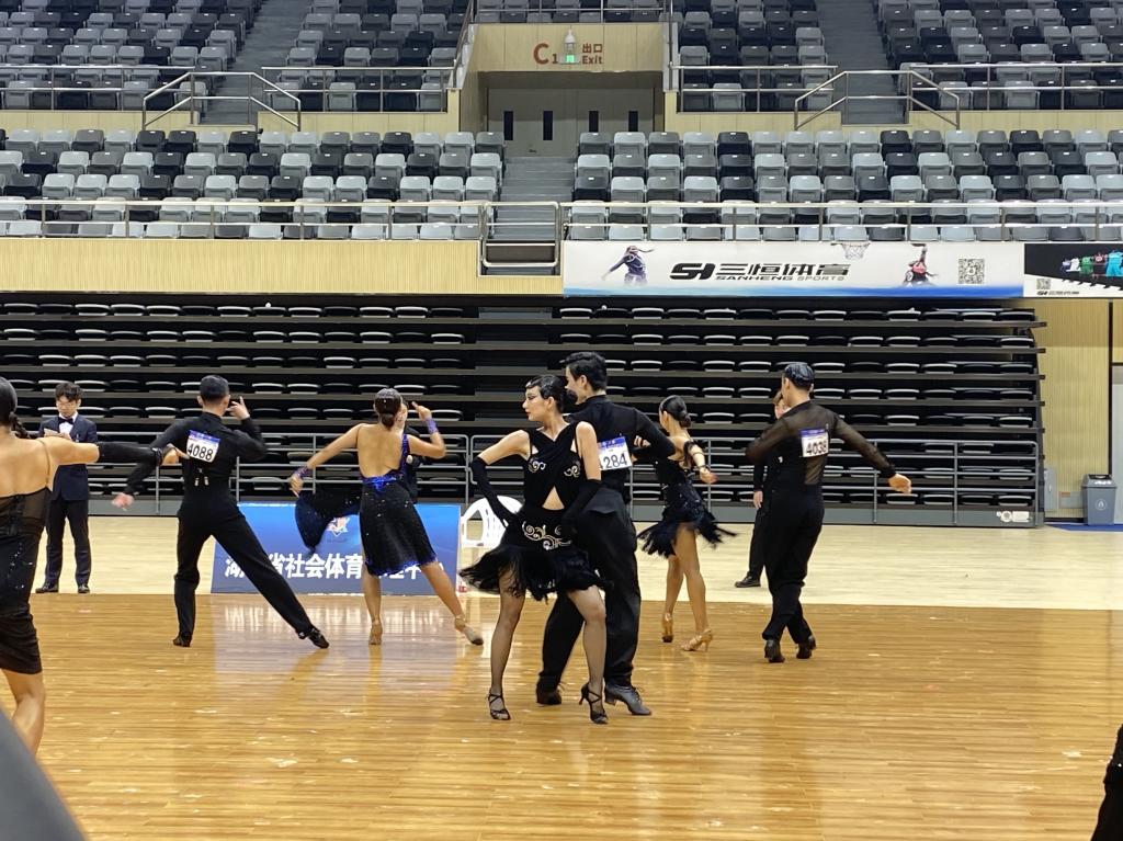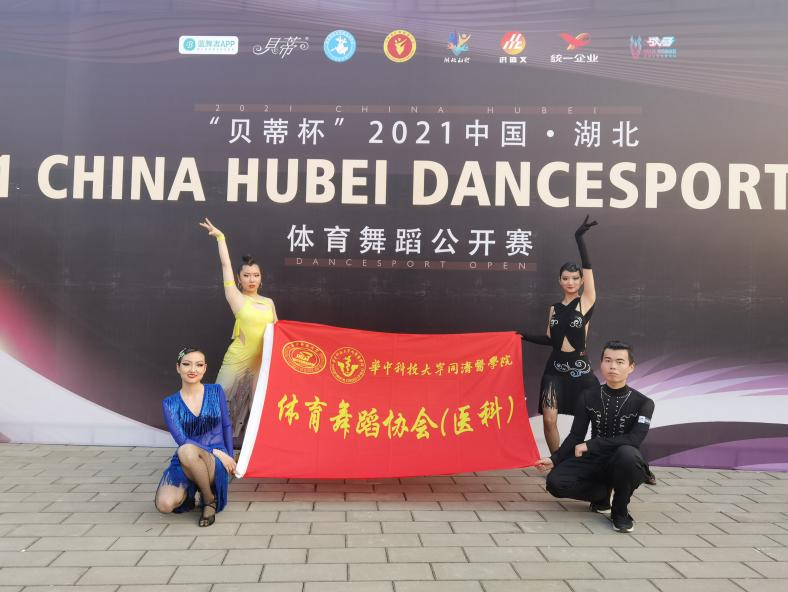 5月2日,由公司挂靠社团体育舞蹈协会(医科)的4名本科生组成的代表队,在光谷国际网球中心参加了“2021中国·湖北体育舞蹈(国际标准舞)公开赛”(以下简称公开赛),本次公开赛由湖北省体育舞蹈协会主办,是疫后湖北省规模最大的体舞舞蹈赛事,吸引了来自各地的六百多支代表队,从5、6岁的小朋友到不惑之年的舞者,从普通院校舞蹈社团的成员到艺术院校舞蹈专业的在校生,5000余名选手共同参加了这场盛会。