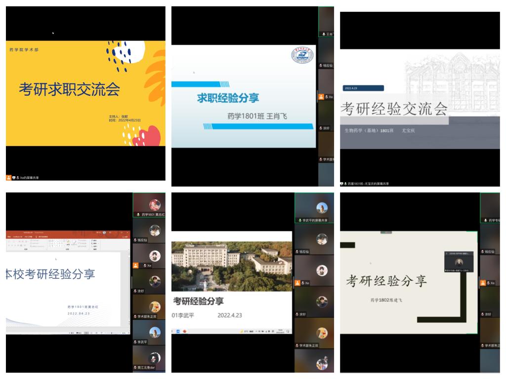 考研至本校的黄志红首先介绍了TapTap点点考研统招总体情况,列出了考研过程中的重要时间节点,并推荐了与考研相关的重要网站及公共课资料,强调了在备考过程中时间规划的重要性。考研至北京协和医公司的尤宝庆分享了自己在备考政治、英语及专业课的初试经验,推荐了考研过程中值得学习的网课和练习习题。考研至上海药物研究所的陈建飞则总结了选择目标院校的经验,分享了自己复习的作息时间安排,详细介绍了每一科目的复习经验,其中着重介绍了药学综合的考纲和学习方法。跨专业考研至武汉大学应用统计专业的李武平介绍了各科目的复习经验,考研时间线和自己的时间安排表,同时推荐了可供备考所使用的公共课复习资料、微信公众号及APP等。