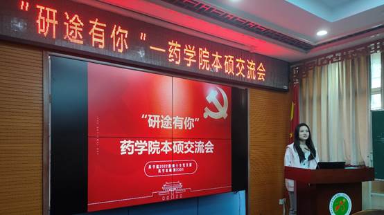 查宏婧同学首先介绍了中药与天然药物学方向的研究内容,研究背景以及本硕涉及到的相关课程,并为大家讲解了该专业日常所需的实验操作技能和实验室日常工作,随后向大家介绍了本方向本院各个课题组老师的具体研究方向以及近年来取得的相关成果,随后向大家分享了自己在本专业的科研心得和感悟,以及天然药化在新药研发中的艰巨任务,勉励大家敢于探索,不怕吃苦。