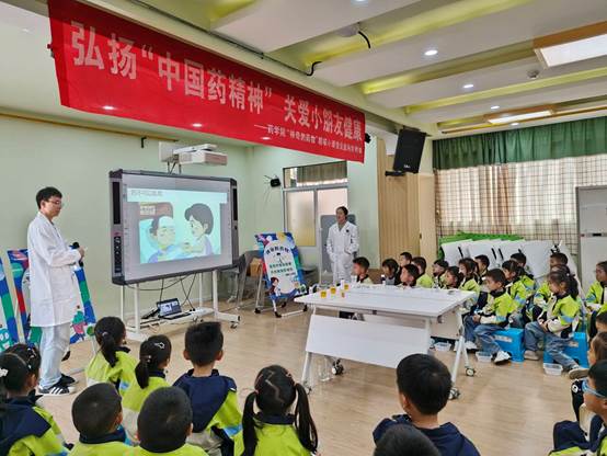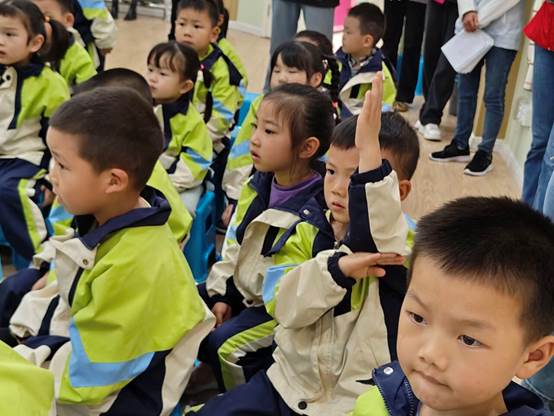 课堂讲解结束后,活动提问环节开始。小朋友们充满了好奇心和热情,他们争先恐后地举手,眼里闪烁着期待的光芒。每个小朋友被选中提问时,都会兴奋地站起来,积极向老师们说出自己准备的问题——“药物是怎么发明出来的?” “药都是苦的吗,为什么有的药物有甜味?”“为什么有的药需要存放在冰箱?”“为什么有的药物需要存放在瓶子里?”……整个教室都洋溢着欢声笑语,小朋友们都感受到了学习的乐趣和成就感。