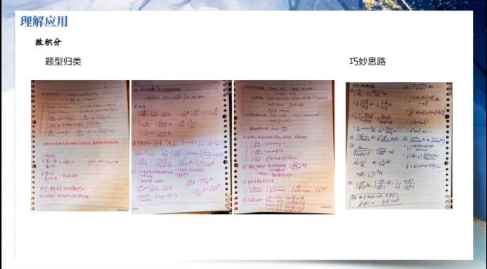 微积分:需要自己去推导公式,寻找一下一题多解的方法并做好题型归类。搞清楚特殊题型的解法并了解部分名词的概念,熟悉例题,勤思善问。注重课后积累,勤加复习与预习。(罗瑞明)