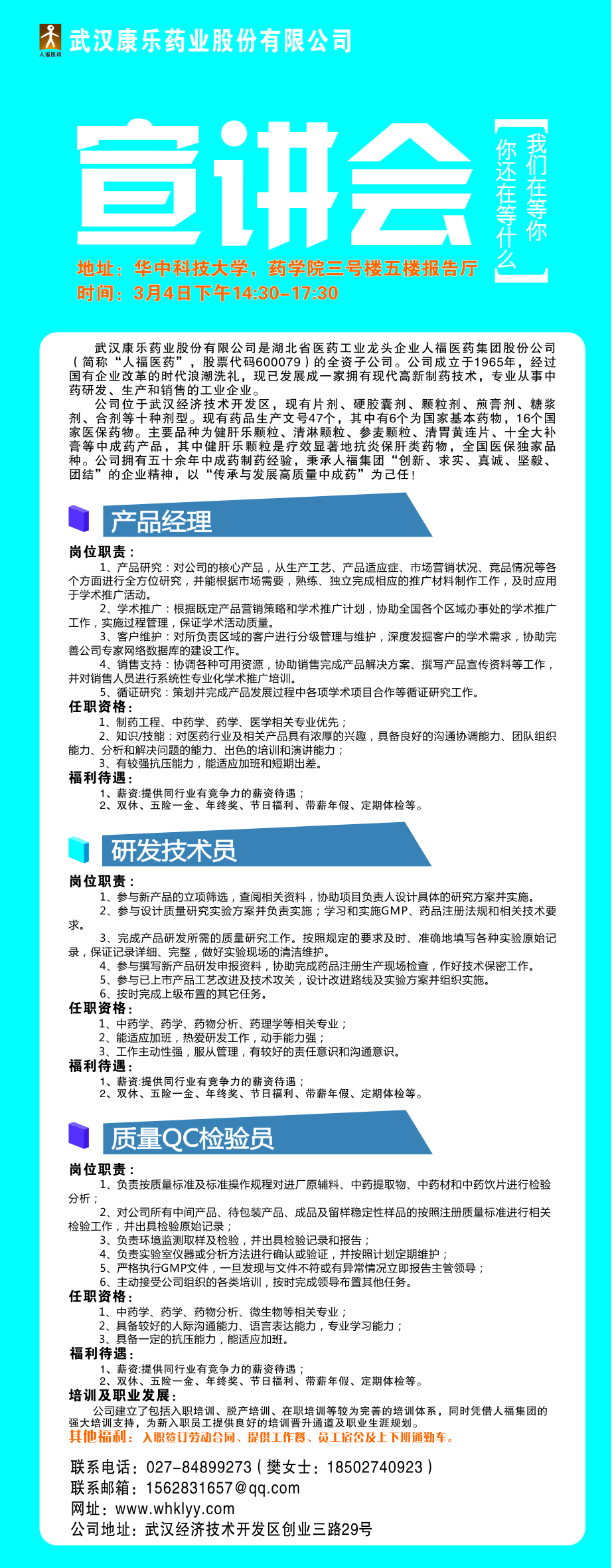 武汉康乐药业股份有限公司招聘宣讲会(20210304)