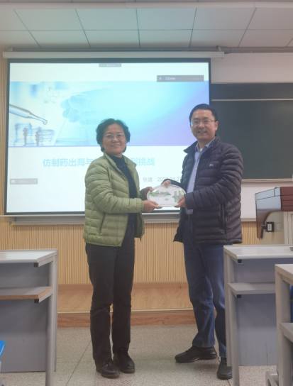 仿制药出海很不易,药品注册专利挑战。在两个多小时的现场交流中,杨建的报告干货满满,现场气氛活跃。他从我国仿制药出海的发展现状到药品注册分类相关的各项规范,从Listing patent & Exclusivity到美国P4专利挑战,结合鲜活生动的市场企业案例娓娓道来。一个个故事引人入胜,产品兴衰、企业浮沉、真金白银,让大家真切认识到了市场创新的力量与企业发展的动能,深刻理解了医药知识产权和药品专利的重要性。在场的员工们和老师们也就各自专业研究领域的相关专利问题进行了提问交流和答疑解惑,现场互动活跃、研讨充分。杨建也就大家关心的医药产业链各环节的就业趋势与职业发展分享了个人体会,展示了医药创新的企业发展与市场前景,鼓励大家在学好理论知识、加强专业学识的同时,关注国家战略和企业发展需要,提升综合素质与技能,结合个人兴趣爱好选择适宜的赛道,树立发展信心。
