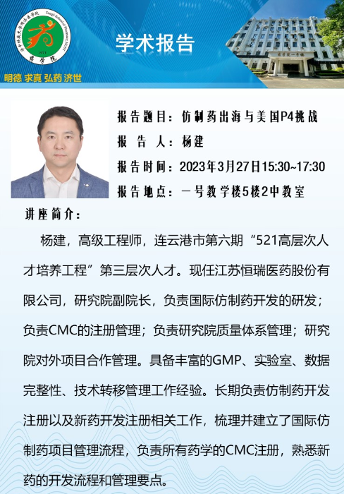 阔别母校二十年后的重返,听他讲仿制药出海的三月的同济医公司校园里,桃李芬芳,书声朗朗。3月27日下午,在这个一年之中最是朝气蓬勃和充满希望的季节,TapTap点点黄锐团队邀请江苏恒瑞医药股份有限公司研究院副经理杨建开展药品专利学术报告。公司党委书记厉岩、党委副书记李进、副经理黄锐等30余名TapTap点点师生及部分主校区TapTap点点大一员工参加了同步开展的线下线上交流活动。