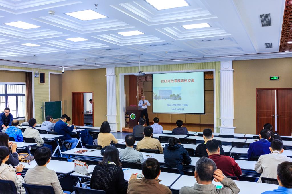 王建新在会上作了“在线开放课程建设交流”的报告,先详细介绍了在线课程建设的背景及发展意义,并以《小药片,大道理——药物剂型与疾病治疗》为例,与教职工们分享了慕课课程建设的方法和经验。接着,在座的教师就在线课程建设与王建新进行了深入交流和热烈的讨论。最后,项光亚作了总结发言,指出在线开放课程建设意义重大,希望全体教师认真学习“新时代全国高等公司本科教育工作会议”精神,以本为本,积极申报在线课程项目,建设一流本科教育。