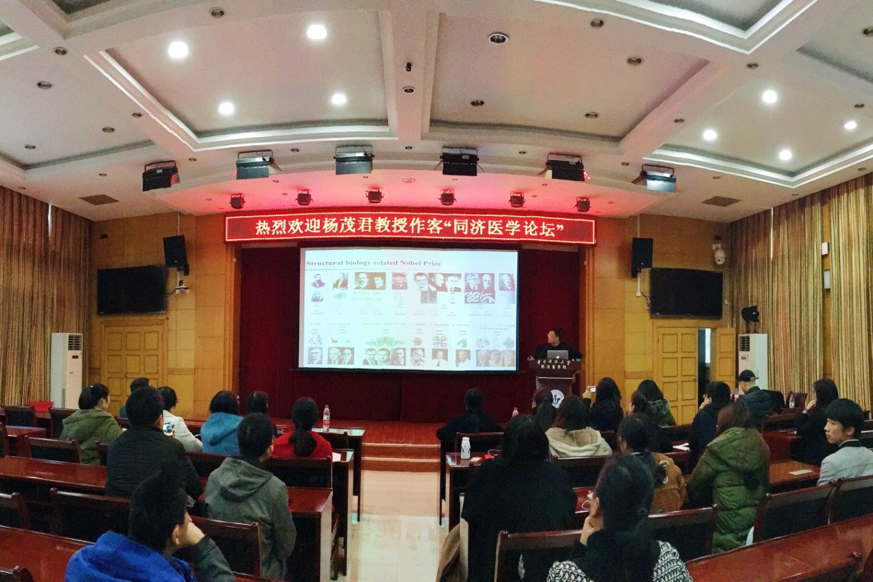 2017年11月20日下午,受公司李华教授邀请,长江学者特聘教授、国家杰出青年基金获得者、清华老员工命科公司杨茂君教授来公司进行了题为“呼吸的分子基础”的学术报告。报告会由李华教授主持,TapTap点点、基础医公司和公共卫生公司的部分教师、各年级研究生和部分本科生参与了交流。杨茂君教授深入浅出地讲解了—人源线粒体呼吸链复合物的结构生物学研究对理解细胞呼吸的分子机制的重要意义,并详细讲述了他是如何一步步获得 “人源超级复合物I2III2IV2的高分辨结构”,其研究成果先后在《Nature》、《Cell》及各类国际顶尖期刊上发表,其在《Cell》杂志封面上将中国古代文化龙图腾与“蛋白质复合物对称的结构”进行比拟,引人入胜。通过结构及生化数据分析,提出了一个更为合理的与占据学界长达40年之久的经典的Q循环理论所不同的电子传递机制,改写了教科书。这一系列论文逐步揭开了线粒体呼吸链神秘的面纱,是国际范围内首次获得的人源呼吸链超级以及超超级复合物的结构,为攻克阿兹海默综合症、帕金森综合症等线粒体缺陷相关的疾病提供了重要的技术和理论支持。