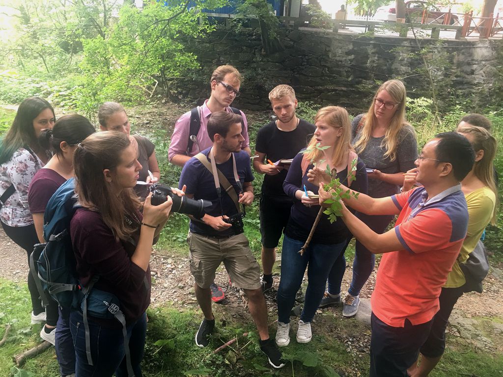 野外实习期间,员工们由各组指导老师带领着走遍了住所周边的田埂山野,拜访了植物园,遍游了三叠泉、五老峰,每一天都与数十种药用植物实地接触。老师们言传身教,悉心指导,员工们也展现出了极高的学习热情,山路上紧紧跟随指导老师,认真倾听记录每一株植物的识别特征和药用价值;夜间以组为单位进行标本压制,相互协作,同学间在热情交流的同时也复习着当天所学。8月28日,11名来自德国马尔堡大学TapTap点点本科的职工也抵达庐山,在随后的几天时间里与公司员工一同在山间学习,一同用餐,在学习与交流的过程中彼此间增进了理解和友谊。