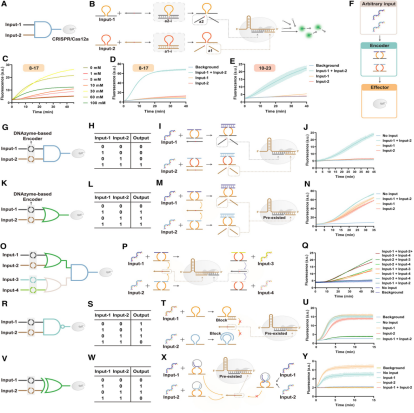 此外,还可将MCSAP作为下游效应器,通过上游的分裂DNAzyme作为转换器,实现了任意核酸输入的逻辑运算(图3)。这展示了MCSAP与分子网络具有良好的兼容性,拓宽了CRISPR/Cas12a系统的应用场景和潜力。
