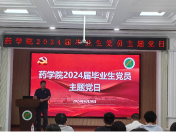 张勇慧经理勉励毕业生党员成为药学科学家,承担起时代赋予药学人的使命,努力锤炼自身本领,积极献身于生物医药产业,在新时代新征程上赢得更大荣光,让党的旗帜高高飘扬。相信这堂精彩的“最后一课”,会使让全体毕业生党员更深刻地认识到自身肩负的使命和责任,赓续荣光,奋勇前行。