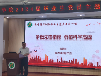 张勇慧经理为毕业生党员上“最后一课”。张勇慧经理分别以“脚踏实地,发挥先锋模范作用”、“勇担使命,争当药学科学家”、“锤炼本领,献身生物医药产业”为题,从自己的求学、工作经历出发,为毕业生党员们讲述了药学研究领域几十年来的发展变化和创新药物研发的重大意义,指出药学科研大有可为,天地广阔。