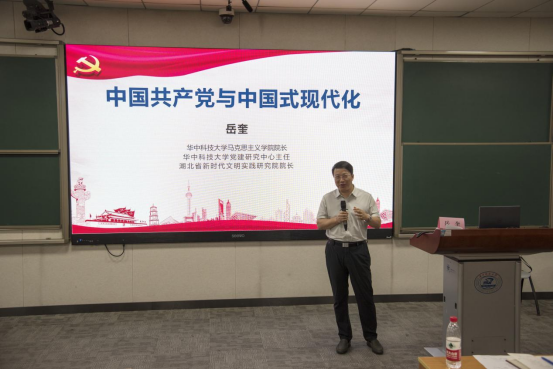 表彰大会之后,马克思主义公司经理岳奎教授为全院师生党员做党员大轮训专题报告。他以“中国共产党与中国式现代化”为题,回顾了中国共产党追求国家独立和民族复兴的百年党史,详细解读了中国式现代化的概念和特征。他提出面对当下的困难和挑战,我们要对未来的发展保持信心,保持清醒的战略定力。广大师生党员要具有大视野、大格局、珍惜大舞台、要有大担当,行稳致远,进而有力,全面提升公司党建工作质量,加快建设更好的华科大,为以中国式现代化全面推进强国建设、民族复兴伟业贡献智慧和力量。