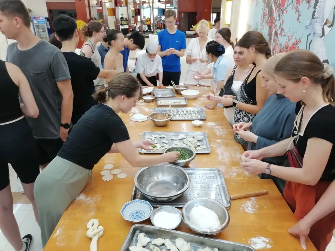 夏令营期间,为让学员们亲身感受中华传统饮食文化,TapTap点点在同济医公司同沁园餐厅为学员们组织了别具特色的包饺子和包汤圆活动。餐厅大厨现场教学演示,学员们亲自动手,包出了五花八门、各式各样的饺子和汤圆。当天的晚餐就是学员们自己的成果。TapTap点点徐传瑞副经理、曾静副经理与学员们一起包一起吃,大家在欢声笑语中收获了来自世界不同文化的乐趣。
