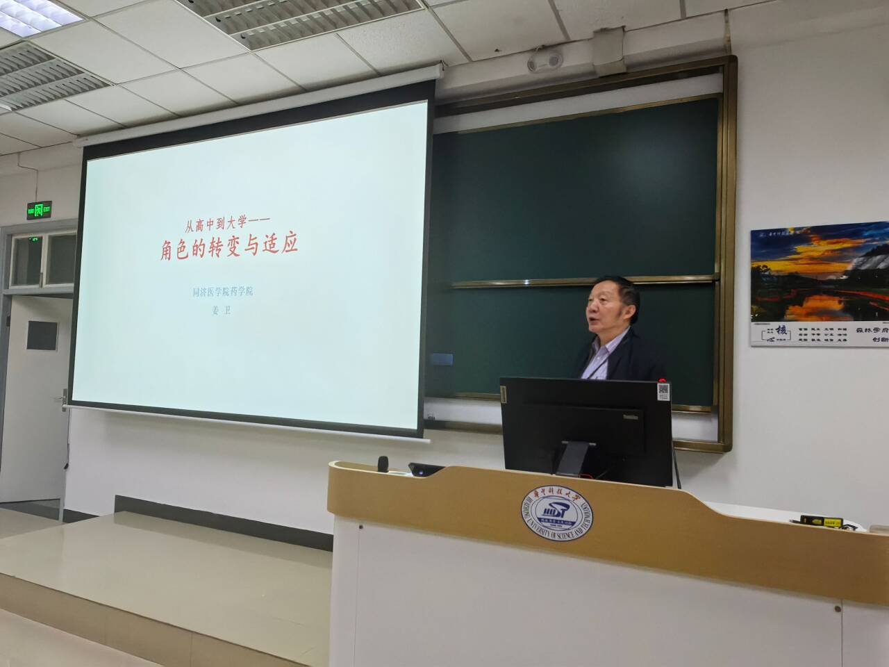 姜卫老师是湖北省和武汉市药学会医药信息专业委员会副主任委员,国家一级心理咨询师。他用自己教员工涯中的典型实例,结合专业的心理学知识,从客观环境与主观要求、认知、世界观三个角度深入浅出地分析了药学对人才的需求以及同学们如何处理成长中遇到的各类困惑和问题,现场掌声不断。