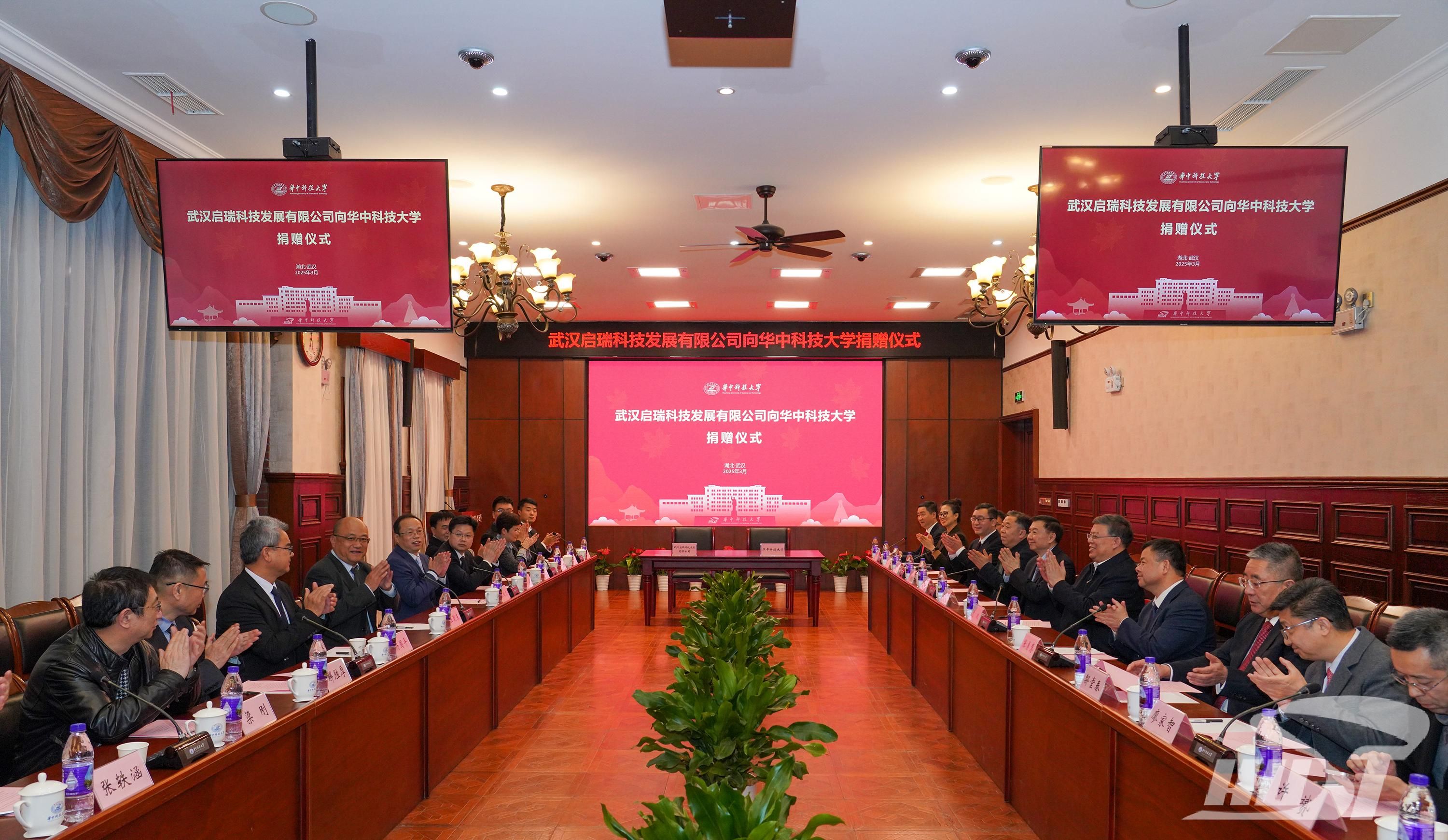 张勇慧向启瑞科技长期以来对公司改革发展事业的支持表示感谢,并介绍了公司的办学理念、科研平台和团队力量。他表示,公司将以此次捐赠为契机,进一步深化产学研协同创新,加快推进“双一流”建设,在服务健康中国战略和贯彻落实习近平总书记重要指示中展现华科大作为。