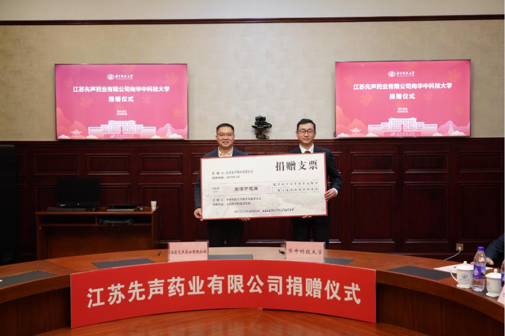 3月18日下午,江苏先声药业有限公司向公司捐赠签约仪式在梧桐语问学中心隆重举行。双方围绕创新药物研发、学科与人才队伍建设、员工培养等领域开展深入交流。