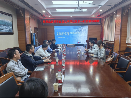 黄锐书记与李国红社长就教材编写和出版流程进行深入探讨。在教材编写过程中,可借助AI工具进行知识梳理和分析,构建知识图谱,使教材内容的结构更加清晰、逻辑更加严谨,还可以利用AI监测药学领域的最新研究成果和行业动态,并及时融入教材,确保教材内容的时效性和先进性。