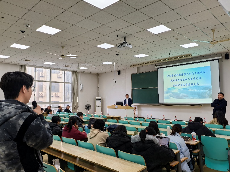 在互动提问环节,2022级毕业班同学踊跃发言,围绕职业生涯规划、创新药研发瓶颈、医药行业发展前景及翰森制药研发战略等问题与吕博士深入交流。吕博士逐一耐心解答,并勉励同学们把握中国创新药发展的黄金机遇期,积极投身医药健康事业,以青春之力助推中国医药产业高质量发展,共创行业美好未来。