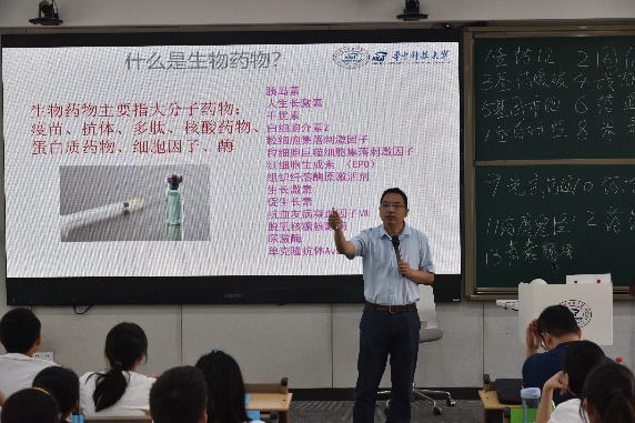 徐传瑞以“什么是生物药物”为切入口,向同学们介绍了生物药的发展现状与前景、生物药学的培养目标和就业前景,欢迎同学们报名参加生物药学基地班选拔。
